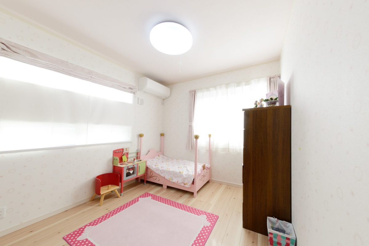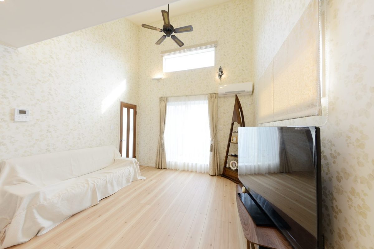 家を明るく大きく見せるために陽光が多方面から射し込むよう窓をレイアウトし、居心地のいい空間を作りました。