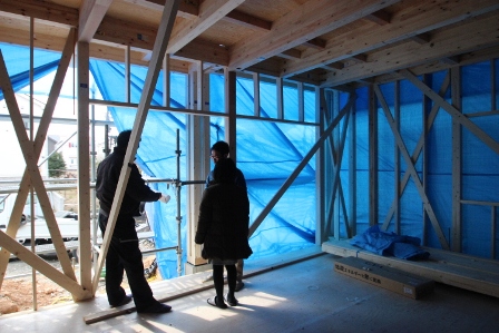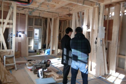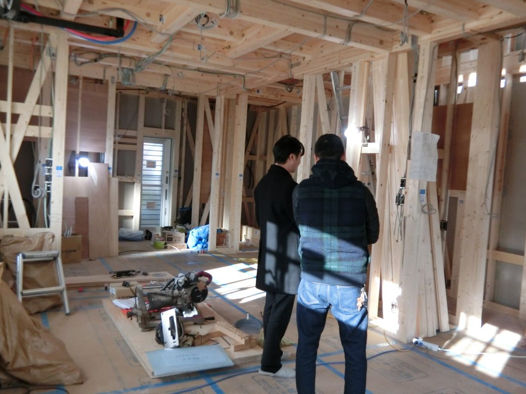 年末の上棟からしばらく経ち、電気立会いを行いました。コンセントの位置や数、照明の確認など実際の生活をイメージしながらの打合せでした。特に変更はなく、さっそく来週から吹付の断熱が行われるそうです。ここからどんどん工事が進んでいくと思うので、時間ができればちょくちょく見に来たいと思います。